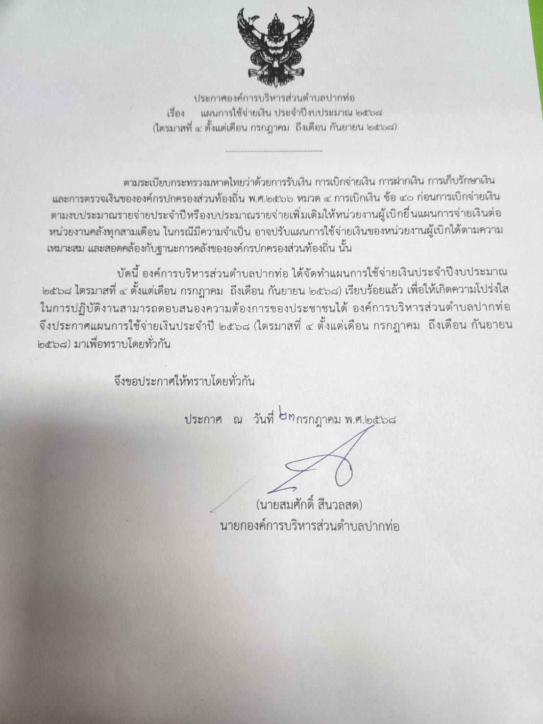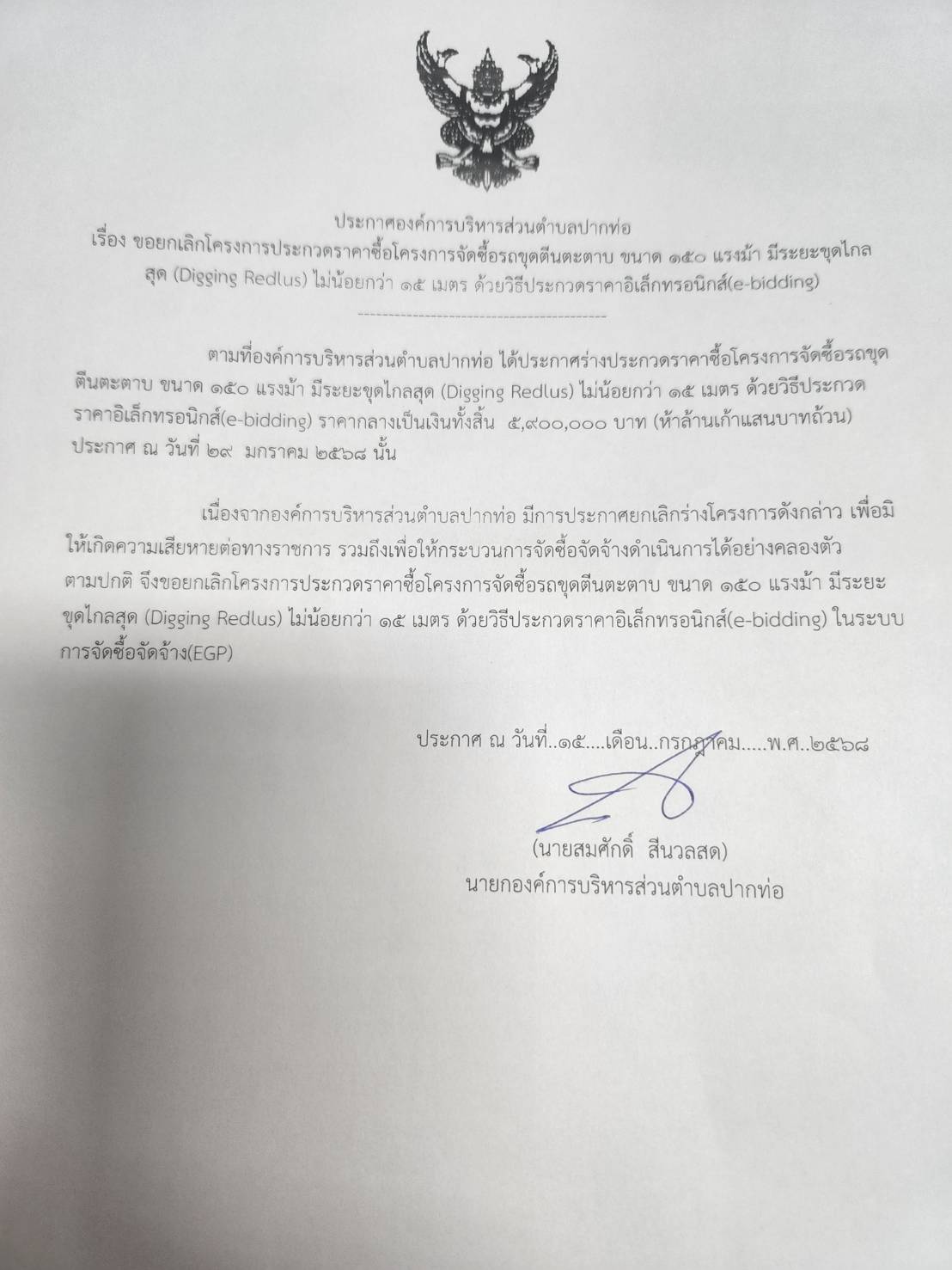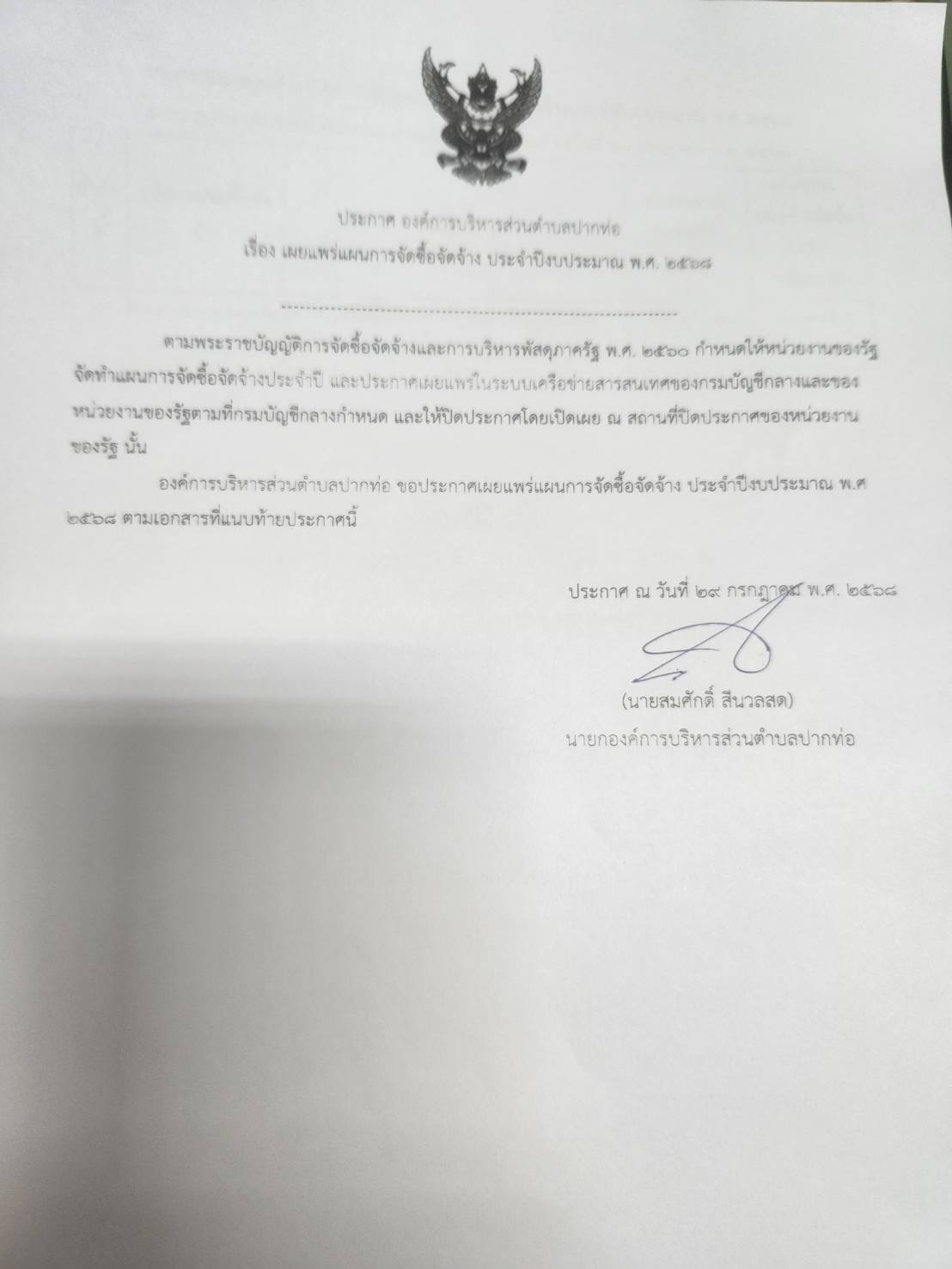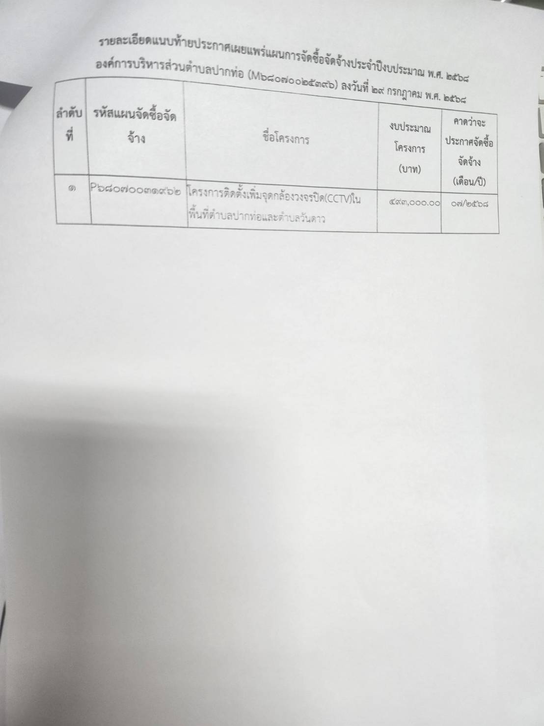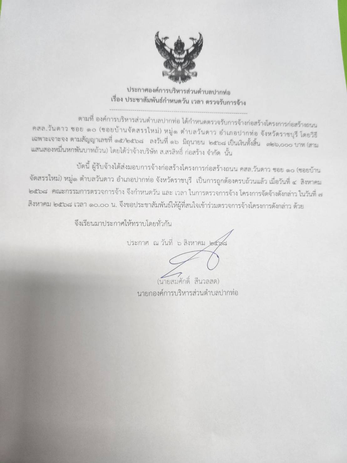 ประชาสัมพันธ์กำหนดวัน เวลา ตรวจรับการจ้าง