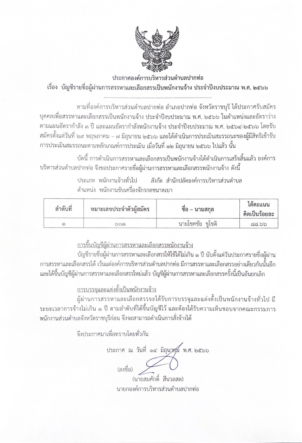 รายชื่อผู้ผ่านการสรรหาเพื่อเป็นพนักงานผู้สูงอายุทรงคุณวุฒิเฉพาะทาง ตำแหน่ง พนักงานผู้สูงอายุทรงคุณวุฒิเฉพาะทางด้านกฎหมาย