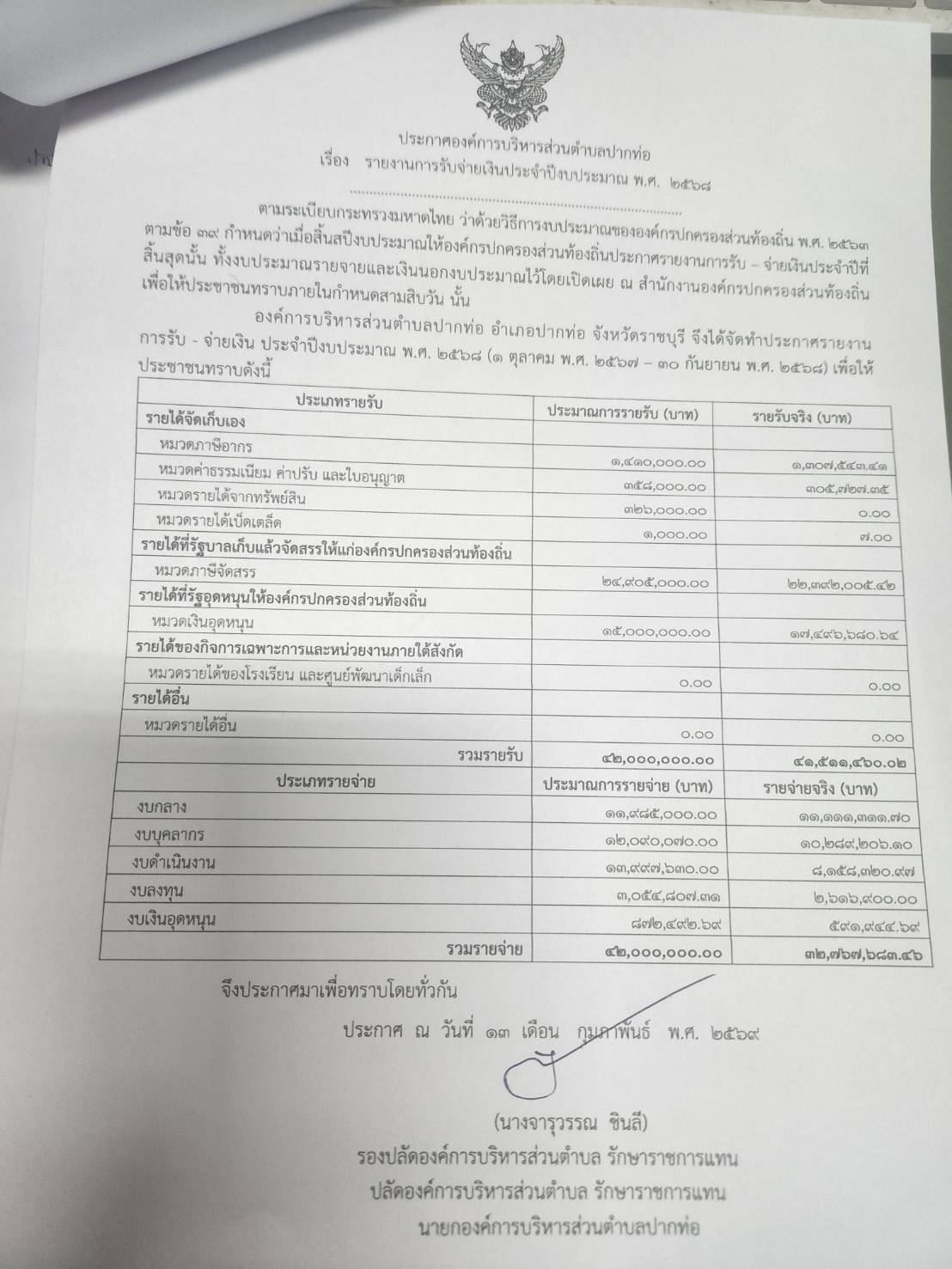รายงานการรับ - จ่ายเงินประจำปีงบประมาณ 2568